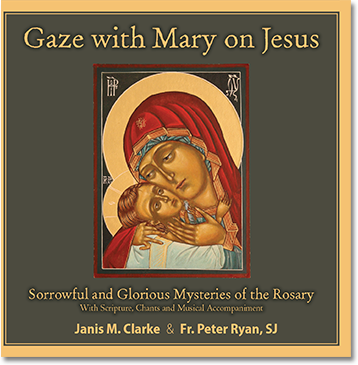 • Beautiful dramatizations by Fr. Peter Ryan, SJ, of scripture passages before each Hail Mary and inspired chants composed by Janis (after each decade) that correspond to the 5 Sorrowful and and 5 Glorious Mysteries.